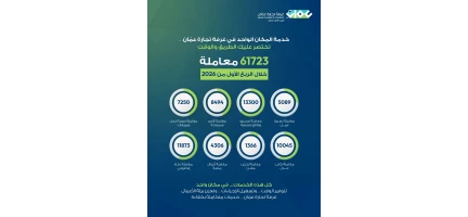 أنجز مقر خدمة المكان الواحد في غرفة تجارة عمان الذي يضم العديد من الوزارات والمؤسسات الرسمية نحو 61723 ألف معاملة خلال الربع الاول من العام الحالي 2026 لمراجعيه.